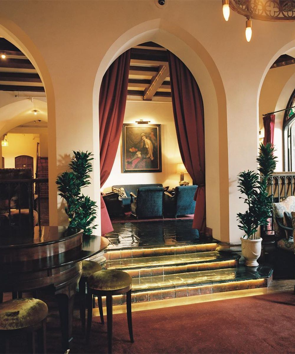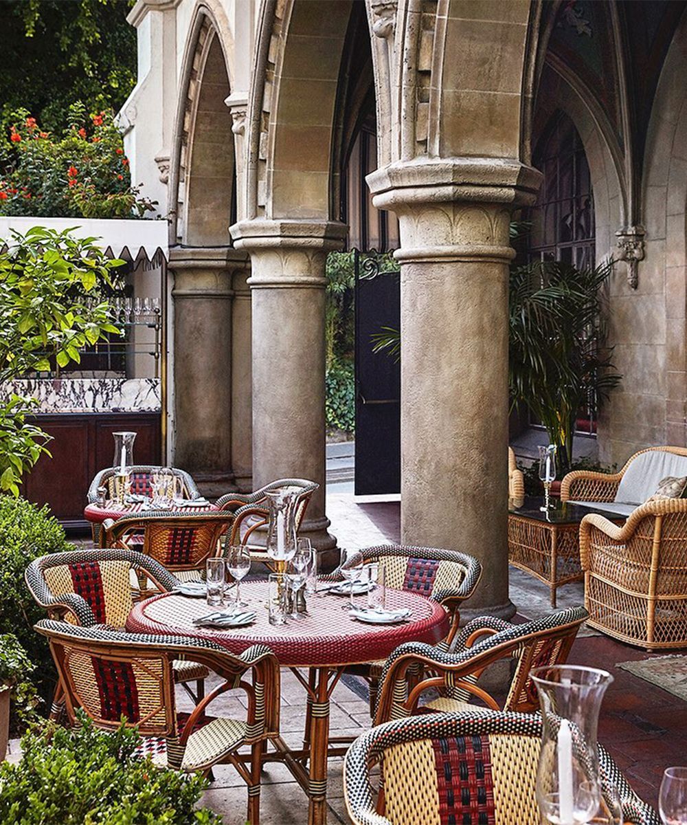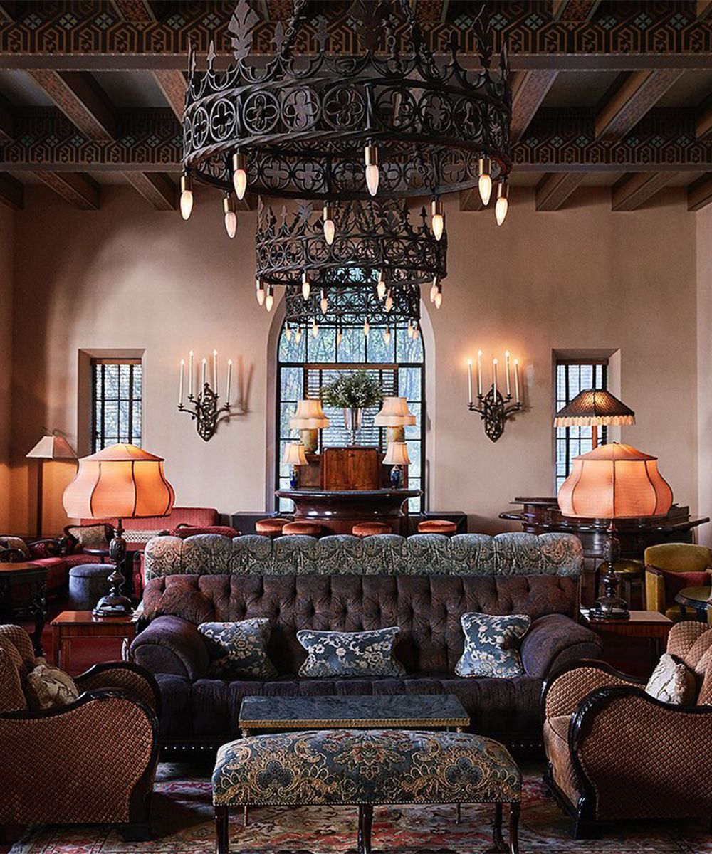 L’estetica francese simil-gotica, in marmo bianco e grigio scuro, è liberamente ispirata ai castelli medievali come lo Château d'Amboise, situato nella Loira, che ha rubato il cuore del fondatore Fred Horowitz. Le finestre ad arco, il colonnato a volta, i due fianchi dell'edificio che si ripiegano su un cortile verde rendono lo stabile una vera e propria fortezza di lusso, in pieno gusto e stile californiano. Il design degli interni crea un'atmosfera sobria e riservata, in cui ci si sente al sicuro da sguardi indiscreti: la luce fioca della hall cade dolcemente su finti broccati e divani di ispirazione vintage, selezionati dallo staff per sembrare che siano sempre stati lì. I soffitti damascati e l’armonia tra il verde e la roccia antica trascinano gli ospiti nella maestosa tenuta di influenza europea, a metà tra l’esoterismo spagnolo ed i dettagli aristocratici francesi, mantenuto dal nuovo proprietario André Balazs. Sono gli accoglienti spazi comuni come la hall, la piscina ed il rigoglioso giardino a rendere l’anima glam di una Vecchia Hollywood difficile da imitare oggi.