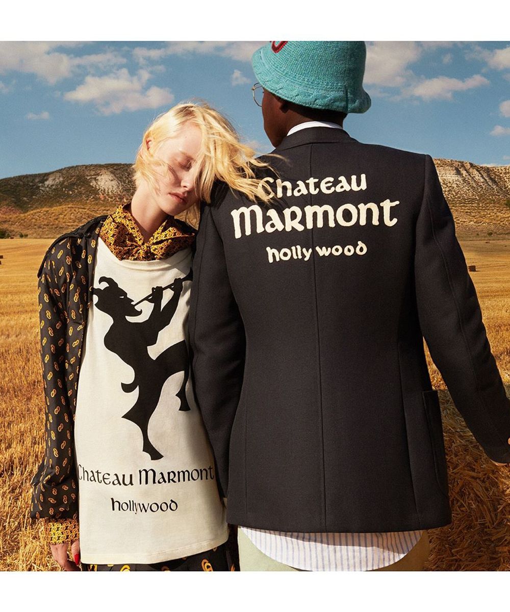 Chateau Marmont è diventato un simbolo e per questo l’arte di tutti i tipi ne è attratta: la musica di Lana del Rey, che scrive Born to Die proprio nella camera 79 e a scegliere l’hotel per girare il video di Video Games; il cinema di Sofia Coppola che gira Somewhere interamente nella stanza 63. La fotografia di Annie Leibovitz, Bruce Weber e Helmut Newton, che hanno scattato qui alcune dei loro lavori più iconici; la moda di Stephen Sprouse, Tom Ford, Christian Louboutin e Alessandro Michele. Proprio il direttore creativo di Gucci, assiduo ospite dell’hotel, lo sceglie come fonte di ispirazione per la Resort Collection 2019 di Gucci. L'immagine del dio Pan, metà-uomo e metà-bestia che simboleggia la lussuria, è utilizzata come mascotte sugli stuzzichini da cocktail e sugli asciugamani dell'Hotel, e appare sul fianco della iconica Jackie Bag, su t-shirt, giacche, felpe, orologi e abiti in broccato della casa di moda toscana. L’immaginario dello Chateau si sposa perfettamente con l’idea fluida, ribelle ed esoterica che Michele ha per la collezione: grazie al successo strepitoso diventa una collaborazione, ad oggi disponibile al concierge dell’hotel e sul sito Gucci@ChateauMarmont.com.