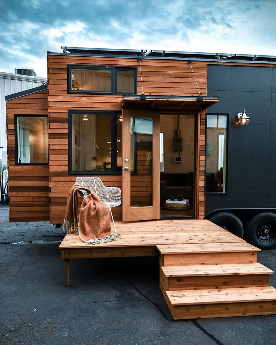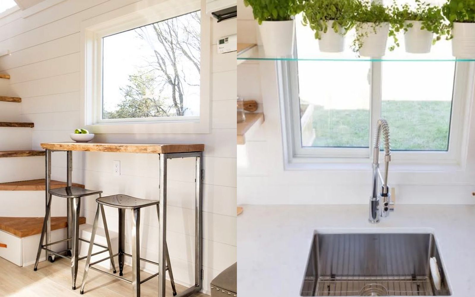 I designer di Olive Nest Tiny House hanno creato la soluzione perfetta per chi vuole vivere in un piccolo spazio, senza rinunciare alla passione per la natura e il giardinaggio. Si chiama Elsa ed è una casetta di 30 mq, poggiata su un rimorchio. Alla struttura principale, costruita utilizzando soprattutto legno di cedro, è annessa una parte con le pareti a vetri, circondata da vasi di fiori. La superficie totale di Elsa si espande di altri 7 mq che sono pensati per godersi la vita all’aperto e, per questo, sono occupati da un portico e da un dondolo. L’interno è luminoso e arredato in modo minimale, con pareti e soffitto ricoperte di legno, lasciato al naturale o dipinto di bianco; una cucina completa di tutto l’occorrente per preparare gustosi manicaretti; una zona lounge con un divano; un piccolo bagno; una stanza da letto soppalcata decorata con alcune opere d’arte. Il prezzo? $81.000.