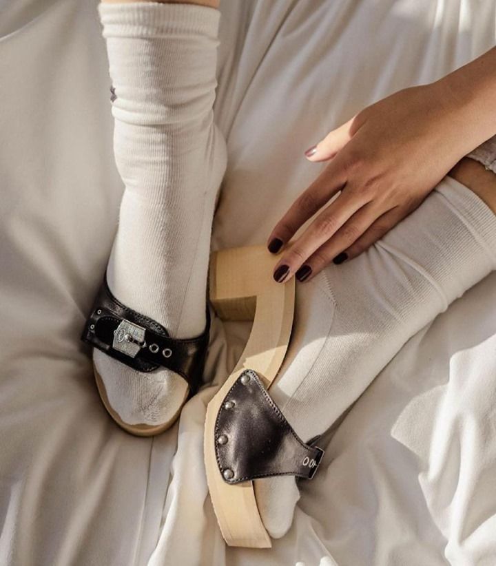 Con l'evoluzione dei viaggi e del commercio intercontinentale nell'America degli anni '70 arriva anche la moda avant-garde scandinava, caratterizzata dallo zoccolo in legno che si sposa benissimo con la cultura hippie che fioriva a quel tempo. Indossati da uomini e donne spesso senza calze, erano la scarpa migliore che si potesse desiderare grazie ai presunti benefici del contatto con il legno, ma era anche perfetta perchè anticonformista per natura. Numerose le foto d'epoca immortalano la classica moda anni '70, con zoccoli in legno quasi interamente coperti dagli ampi jeans a zampa o da ampie gonne lunghe. Sembra un'immagine a noi familiare oggi, vero? Non è sicuramente una coincidenza, visto il ritorno di questo stile negli ultimi anni.
