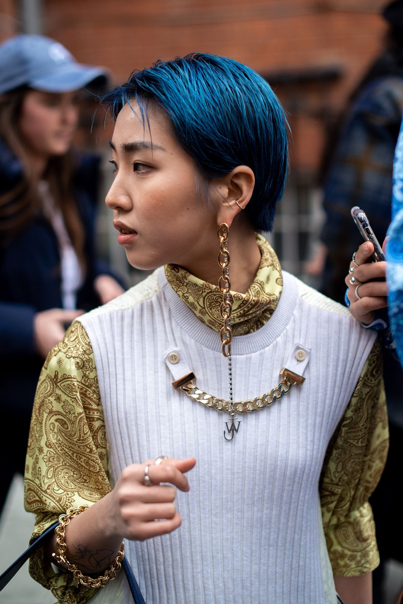 A dominare lo street style londinese sono statement pieces come bag firmate JW Anderson, grande protagonista della Settimana della Moda di Londra, Jacquemus, Prada e Bottega Veneta; nei look si gioca su contrapposizioni, volumi, texture, influenze differenti che vanno a convivere un look dal sapore contemporaneo. E' una femminilità colorata, grintosa, divertente e divertita quella avvistata per le strada della città, che si accende ulteriormente grazie ad accessori e gioielli che non passano inosservati.