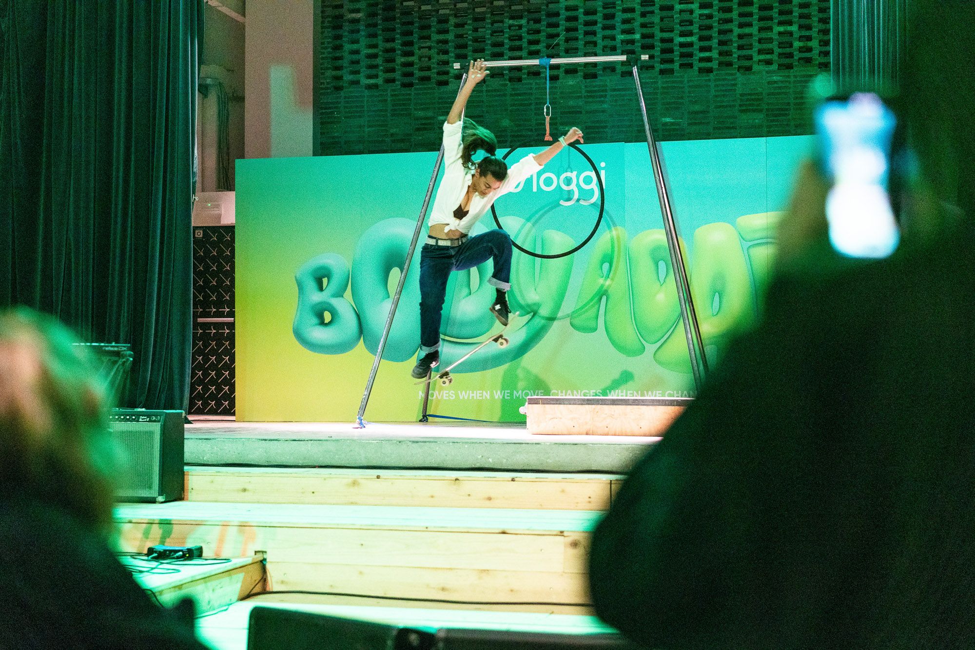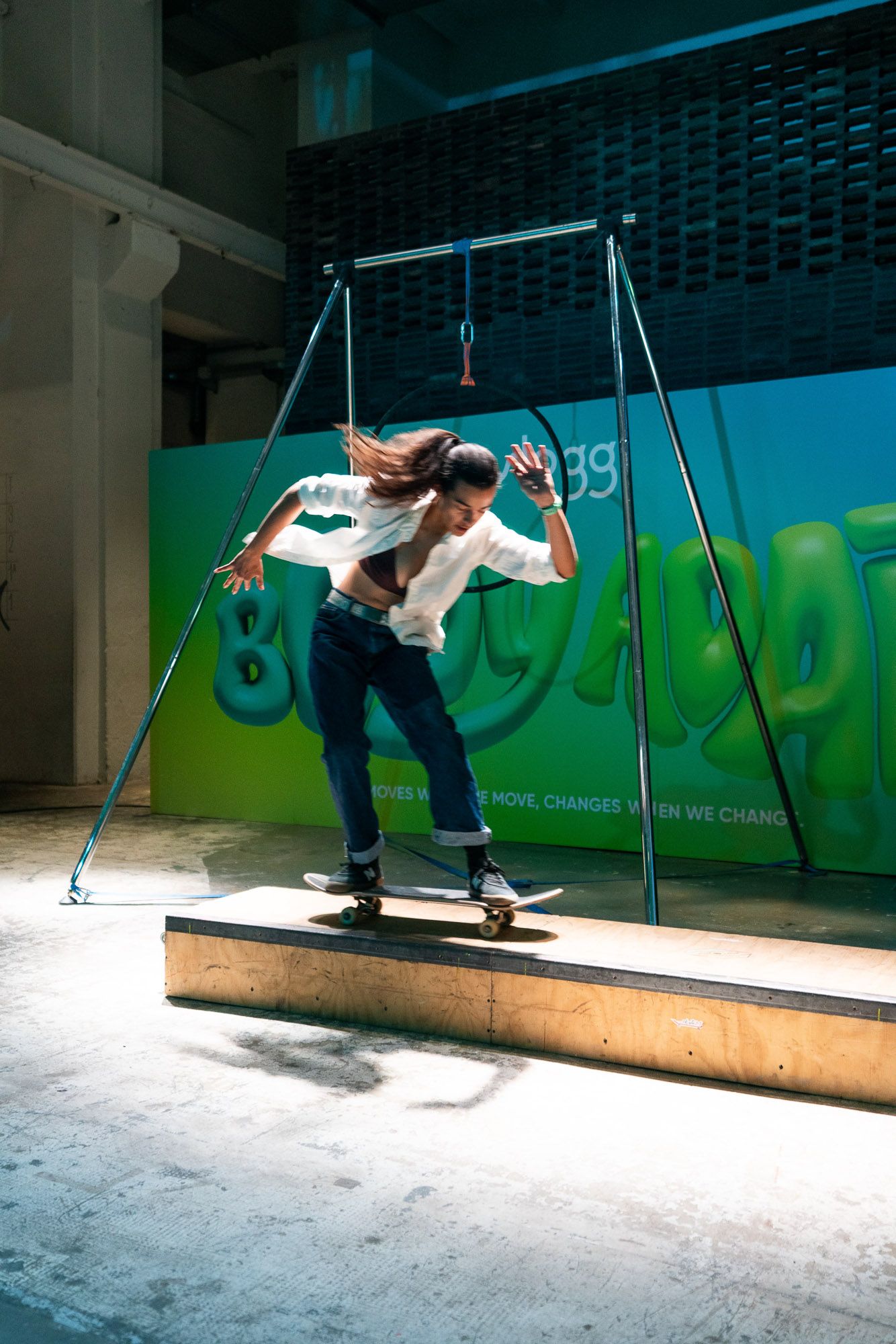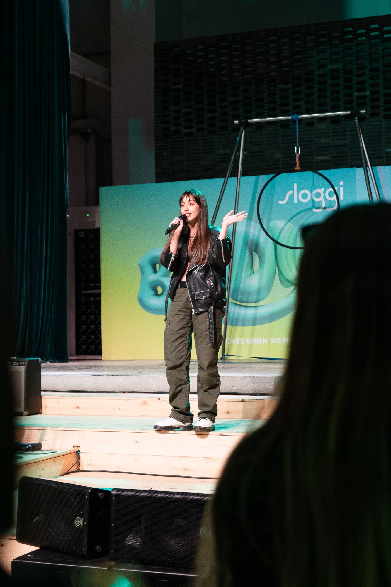 I reggiseni sloggi Body Adapt sono stati protagonisti delle esibizioni artistiche che hanno animato live gli spazi di BASE Milano la sera di mercoledì 23 marzo. L'evento organizzato attorno ai valori della collezione di bra che si adattano al corpo che cambia e che si muove, ha visto le performance live di giovani artiste reinterpretare il concetto con diverse forme artistiche, dimostrando l'estrema adattabilità e versatilità dei modelli. La community e gli ospiti hanno potuto immergersi negli ampi spazi avvolti dalle luci cangianti in blu, verde e azzurro dell'evento powered by nss G-Club costruito attorno ad un'idea di dinamicità fluida e funzionale. Dalle 18.30, le evoluzioni di aerial hoop di @studio9yogaflow hanno scaldato i motori settando il giusto mood per accogliere le coreografie di @evitastork, @jpau e @debbi_blaca e l'esibizione della skater professionista @raffaellabraganca, che ha portato i suoi trick dal palco in mezzo alla platea facendo esultare tutti. Sull'atmosfera generale regnavano le good vibes, che hanno consentito all'artista e illustratrice @allegrettiregretti di completare un artwork ispirato al rapporto con il corpo e al cambiamento, concetto protagonista anche del pannello che gli ospiti hanno inondato con quote scritte a mano. La situazione era accogliente al punto tale da far rimanere la platea entusiasta fino alle 22, dopo l'esibizione live di @elasi e @plastica.zip.