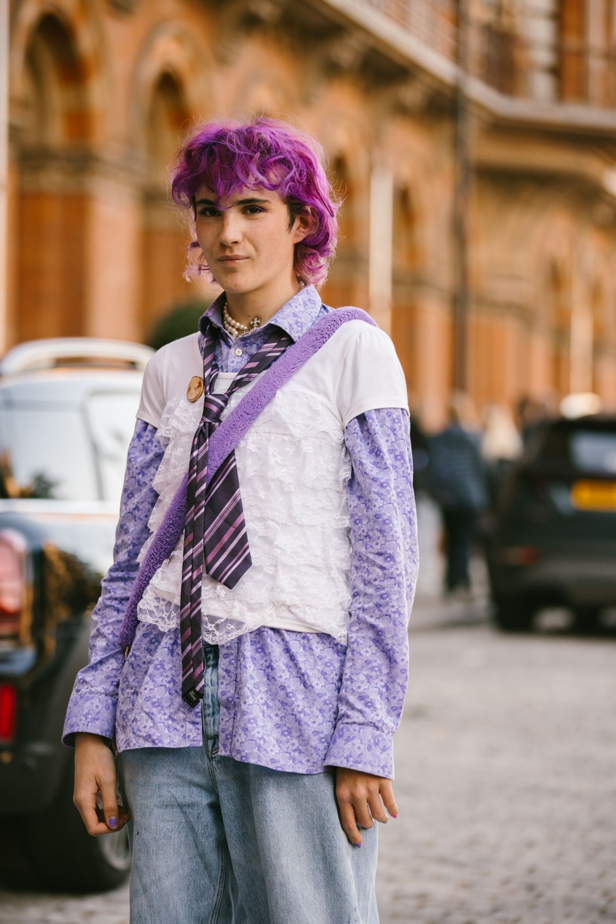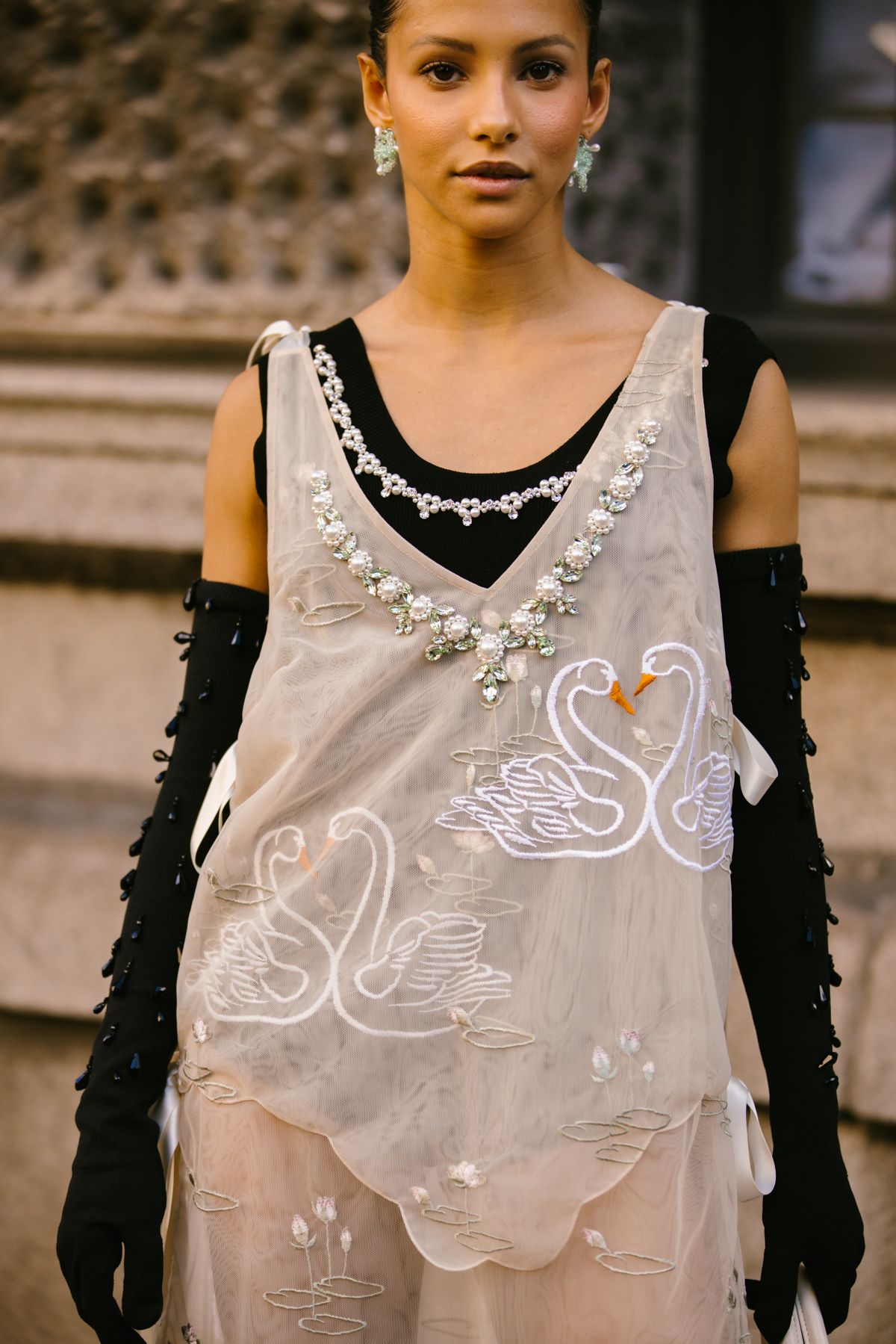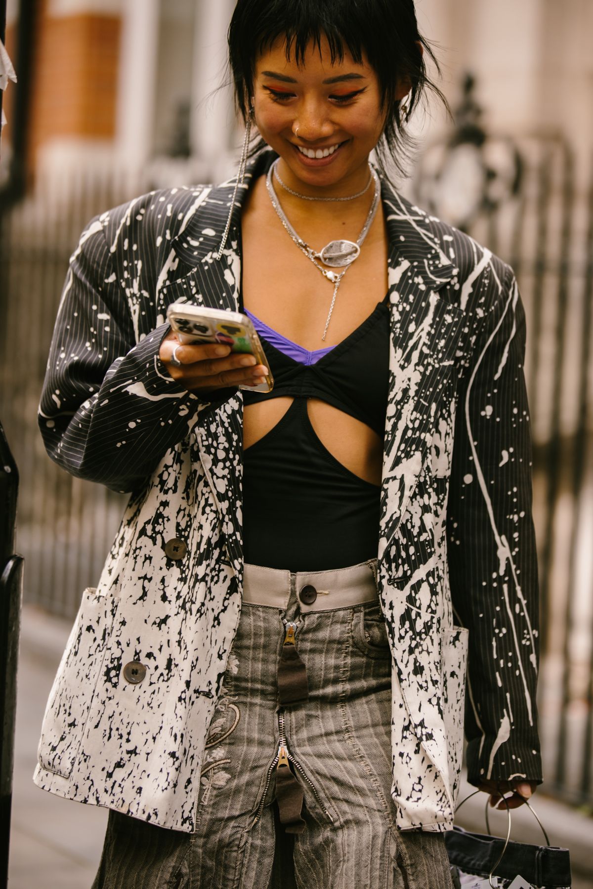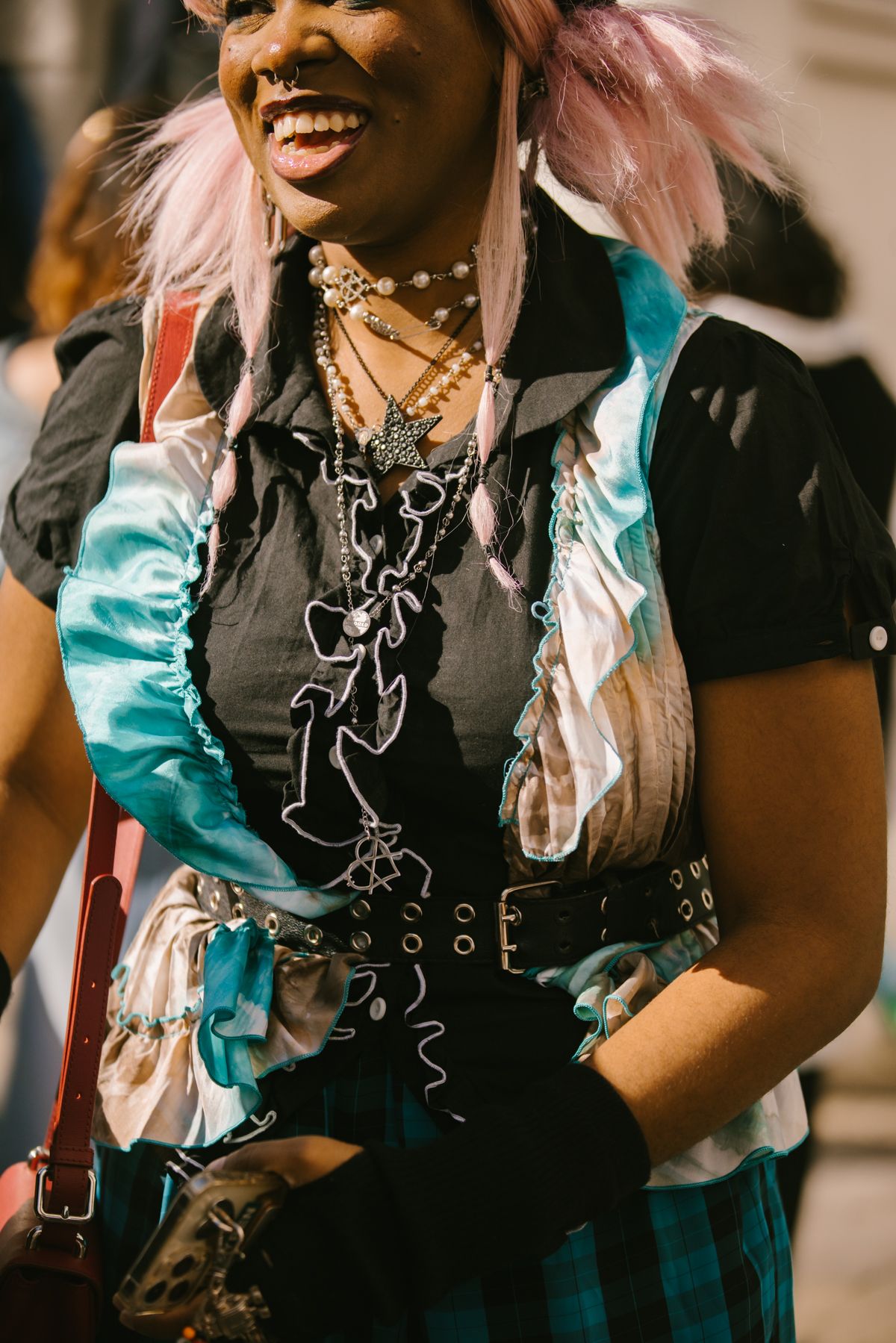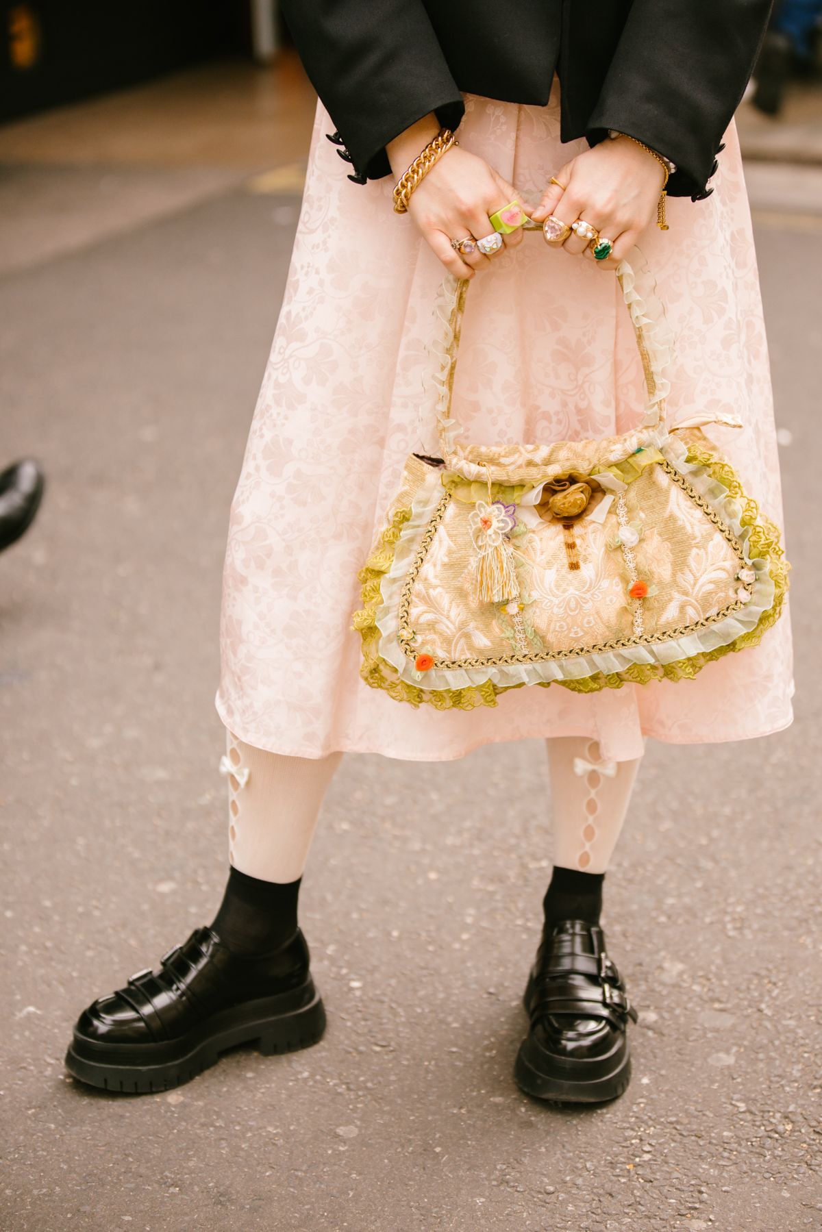 La London Fashion Week di quest'anno è avvenuta nel momento più catartico per la penisola britannica degli ultimi 10 anni, la morte della Regina Elisabetta. Alcuni importanti eventi sono stati annullati, come la passerella di Burberry e di Raf Simons, ma lo show doveva andare avanti seppur mantenendo il mood nazionale di perdita e lutto. A tenere alta l'asticella della vena artistica che contraddistingue la scena creativa britannica sono state le persone presenti fuori gli selezionati per le sfilate di Simone Rocha o Loewe che hanno sfoggiato look particolareggiati, fedeli al loro stile a cavallo tra riferimenti storici, mix and match di estetiche. Accessori e beauty looks si sono dimostrati il pezzo forte dei look che popolavano le strade di Londra, tra borse ispirate alle forme e al concetto del pearl-core alle cascate d'oro al collo di una crowd prevalentemente gender-fluid che ha catturato l'attenzione dei nostri occhi.